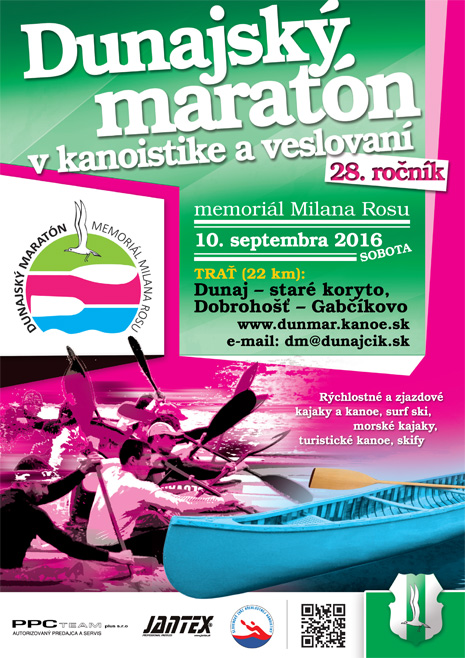 Srdečne Vás pozývame na 28. ročník Dunajského maratónu v kanoistke a veslovaní, memoriál Milana Rosu, ktorý sa uskutoční 10. septembra 2016 (v sobotu) na starom koryte Dunaja.