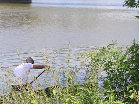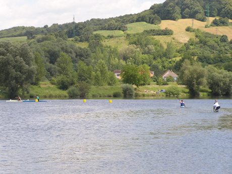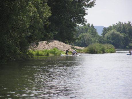 Zdanlivo fotka o ničom, ale opäť sa mi nepodarilo zachytiť dôležitý okamih. Išiel som tesne vedľa vedúcej dvojice na brehu, keď tu zrazu Rado nahlas zahrešil a zastal. Neviem, či narazil on do brehu, lebo ho dosť tesne obaja kopírovali, alebo Ervin do neho zozadu nechtiac (!opakujem v tomto prípade nechtiac, aby som nerozdúchal nacionalistické vášne!). Ale zrazu obaja stáli, resp. dohovárali sa medzi sebou, s tým, že vpredu už bol maďarský reprezentant.
